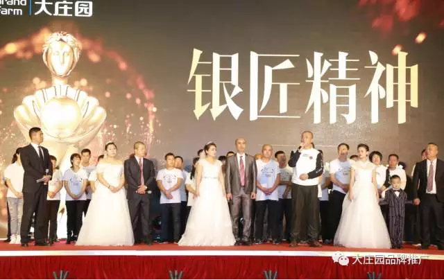 好戲連臺(tái),精彩不斷,眼角感動(dòng)的淚痕還未干,三組身著婚紗西服的夫妻緩緩登臺(tái)。他們是在大莊園工作結(jié)婚生子的員工代表,在大莊園他們不僅收獲了事業(yè)上的成功,也收獲了愛情與家庭。今天,他們?cè)俅问⒀b,只為感謝。