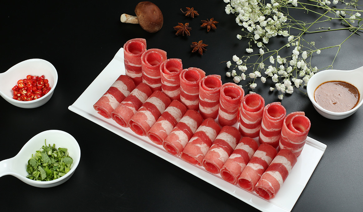 肉質(zhì)鮮美,口味醇香,切片后肥瘦相間,適合涮食。
