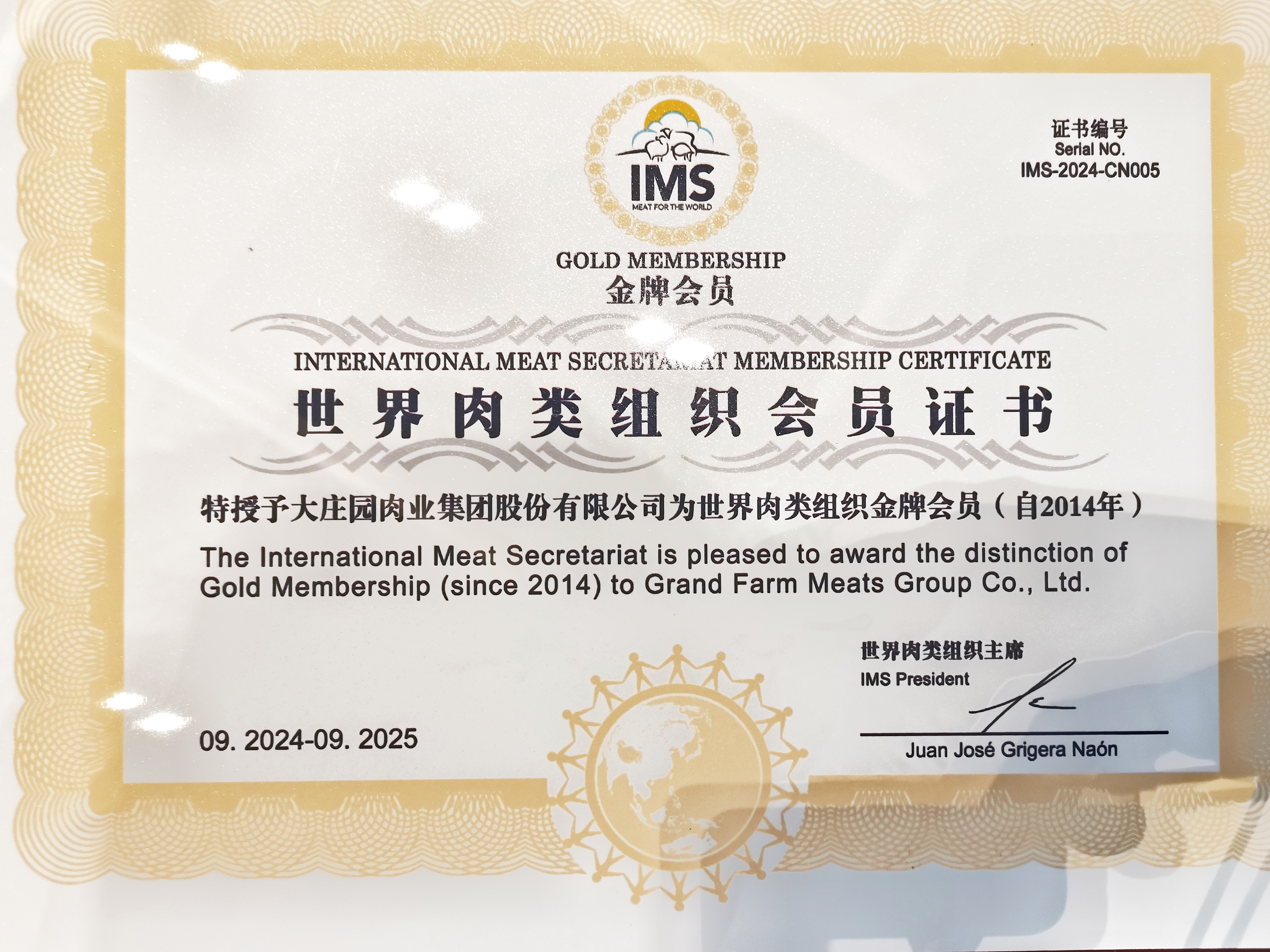 世界肉類組織會(huì)員證書