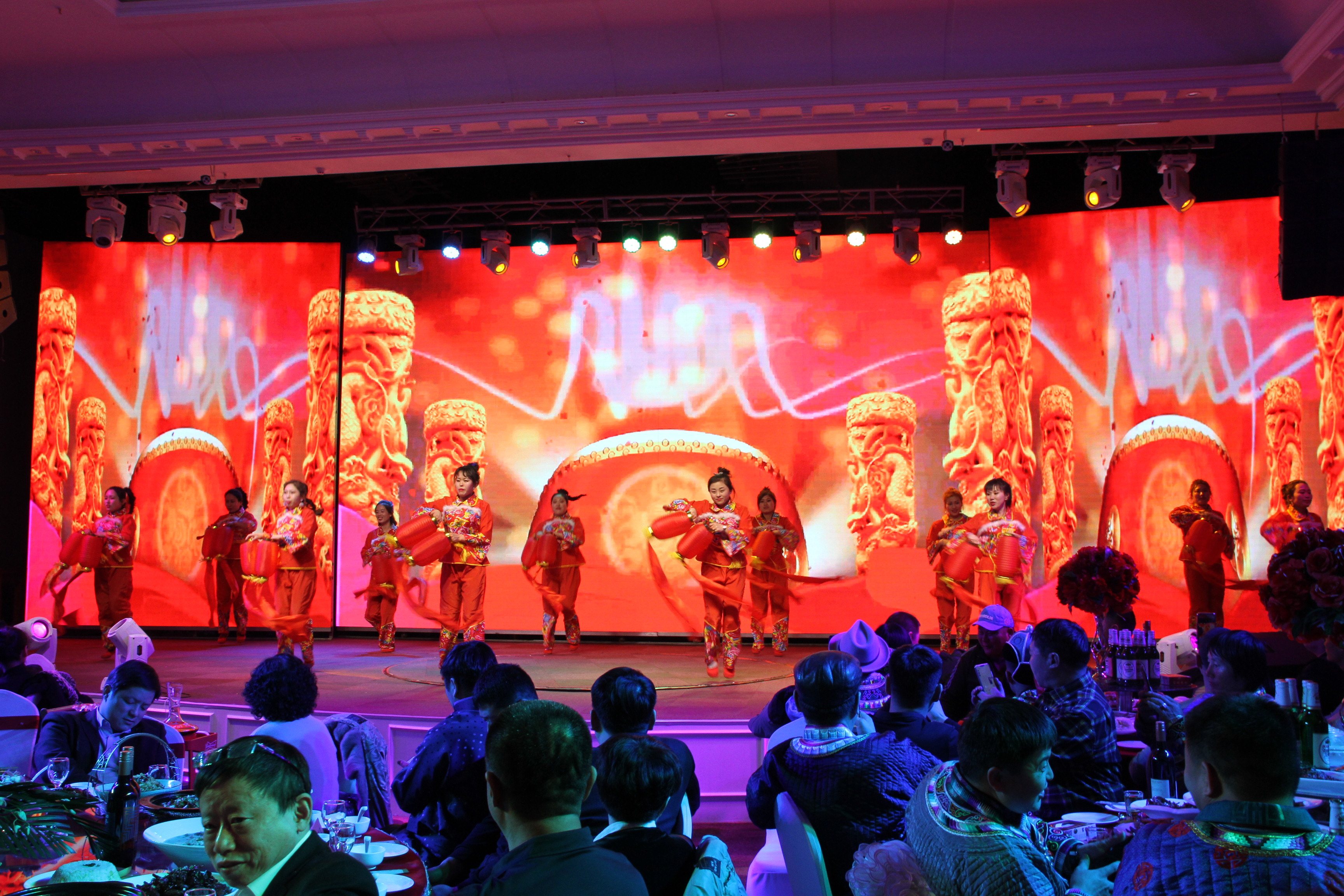 總結(jié)表彰大會之后,大家移身維也納金廳,一年一度的大莊園“春晚”在那里上演——這是大莊園人展示風(fēng)采的最佳舞臺。在集團(tuán)各部門、子公司及國外友人的祝福VCR播放之后,一場喜慶的開場舞《歡樂中國年》拉開了晚會的序幕。