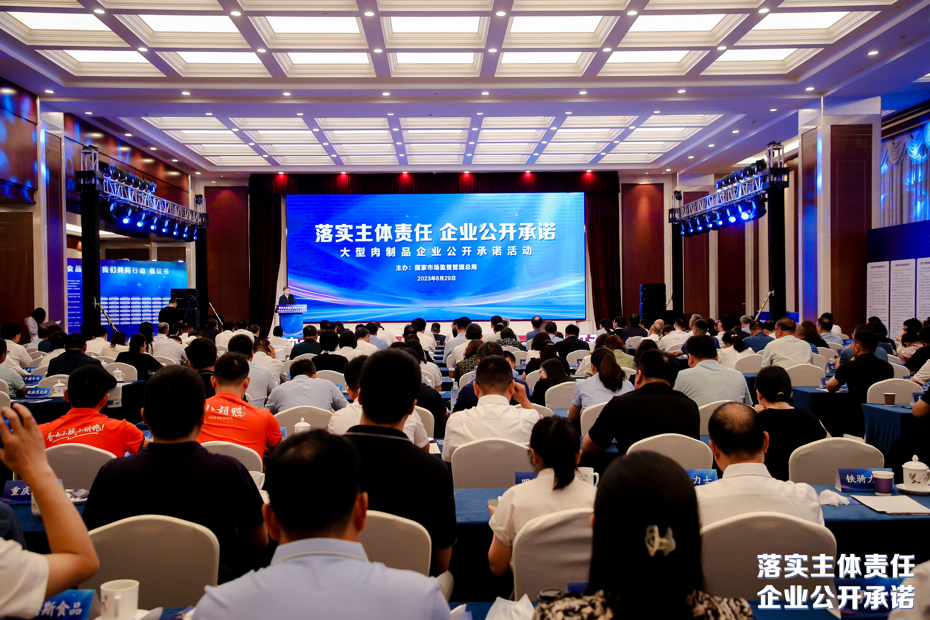 6月29日,國家市場監(jiān)管總局主辦的大型肉制品生產企業(yè)“落實主體責任 企業(yè)公開承諾”活動在京舉辦。國家市場監(jiān)管總局黨組成員、副局長蒲淳出席活動并講話。大莊園集團作為行業(yè)代表,與其它大型肉制品企業(yè)一起向社會公開作出承諾。